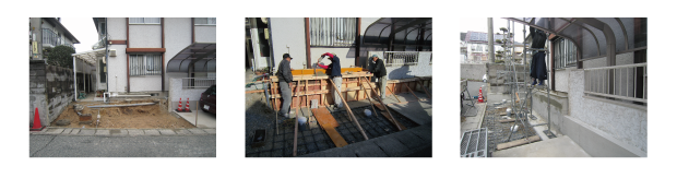 熟練の職人グループですので、迅速かつ丁寧に施工していきます。 車が2台停められるよう空間を設けました。